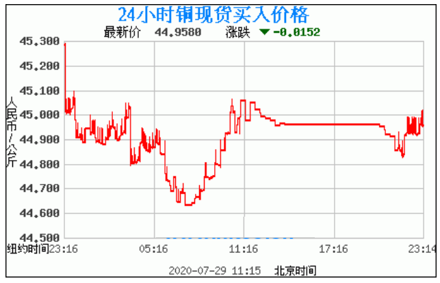 今日最新铜价:45.9580 涨跌:-0.0152