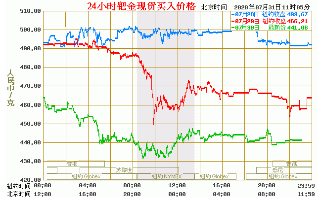 今日最新钯金行情:441.86