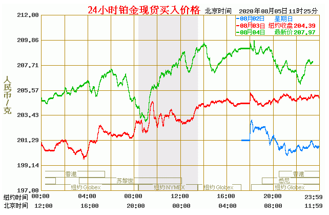 今日最新铂金行情:207.97