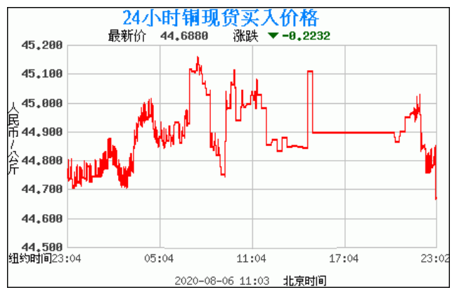 今日最新铜价:44.6880 涨跌:-0.2232