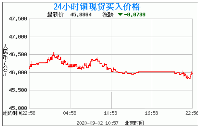 今日最新铜价:45.8864 涨跌:-0.0739