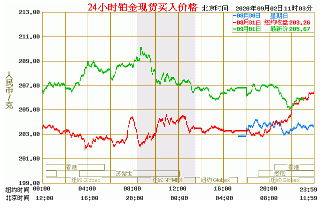 今日最新铂金行情:205.67