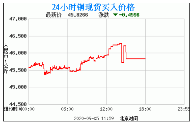 今日最新铜价:45.8266 涨跌:-0.4596