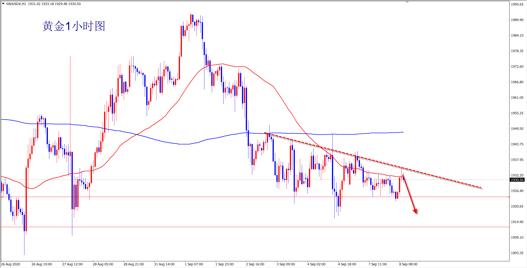 黄金自1993位置下跌至1916一线,明显的下跌波段,而且反弹一直受到均线的压制,上方1942位置也是多空分水岭,没有突破前黄金最终只有下跌一种可能!从日线走势上看,黄金依然是震荡走势,而反弹的高点在不断降低,下方暂时在1910位置获得强支撑,只有破位后才能继续下行跌至1860区域!对于日内操作来说,思路很简单,逢高空!日内关键压力是1932位置,虽然欧盘反弹最高触及1935,但是没有站稳!最终还是暴跌!接下来还是继续空不变,上方防守1942!下方的目标暂时关注1920和1916支撑区域,破位后必然跌穿1900关口,甚至跌至1860区域!