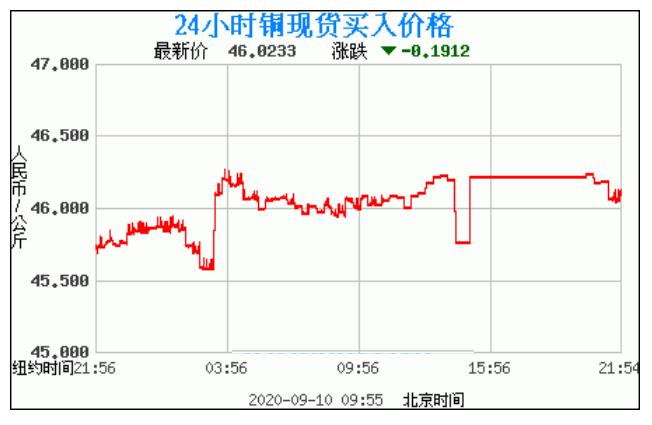 今日最新铜价:46.0233 涨跌:-0.1912