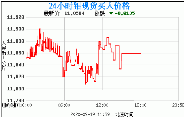 今日最新铝锭行情:11.8584