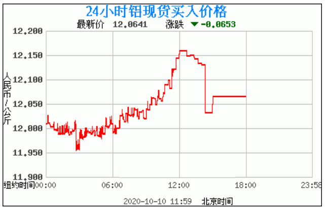 今日最新铝锭行情:12.0641
