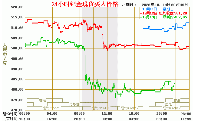 钯金价格走势图 今日最新钯金行情(2020年10月14日)