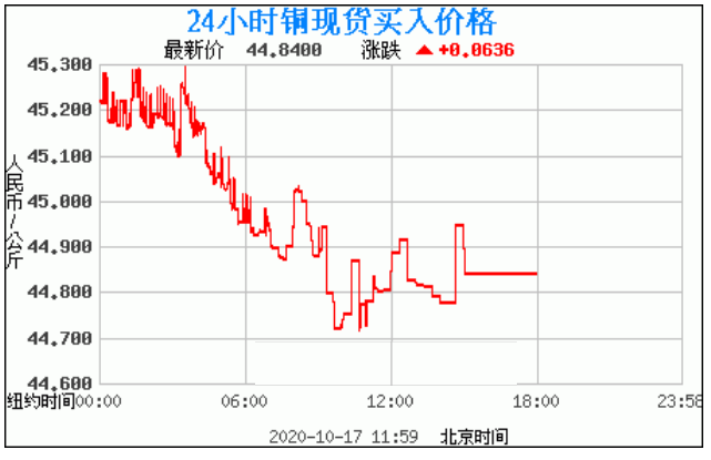 今日最新铜价:44.8400 涨跌:0.0636