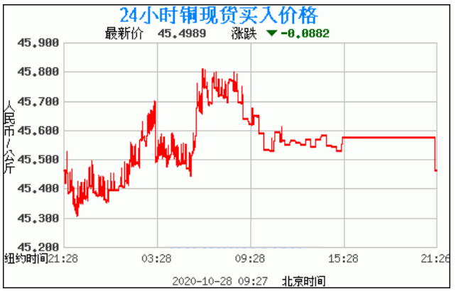 今日最新铜价:45.4989 涨跌:-0.0882