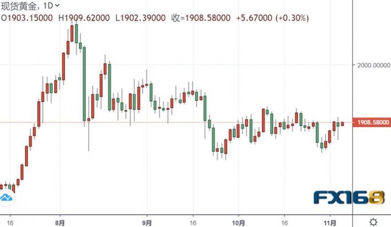 美国大选点票近尾声,特朗普与拜登斗得难分难解,但国会僵局将会继续的预期令市场找到一丝确定性,周四(11月5日)亚市盘中,亚股多数反弹延续昨日美股升势,美元基本持平,现货黄金短线上涨目前逼近1910美元。