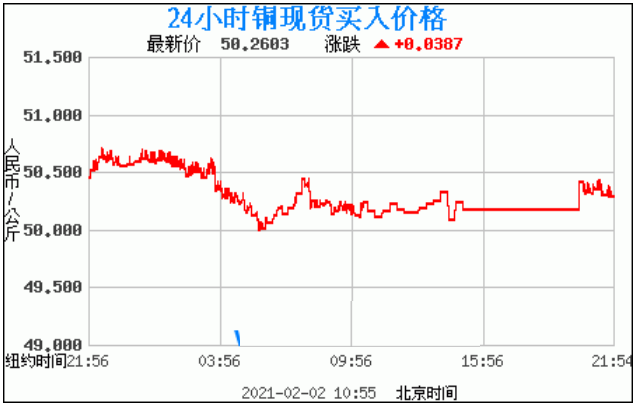 今日最新铜价:50.2603 涨跌:0.0387