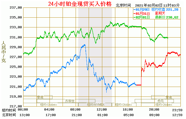 今日最新铂金行情:230.62