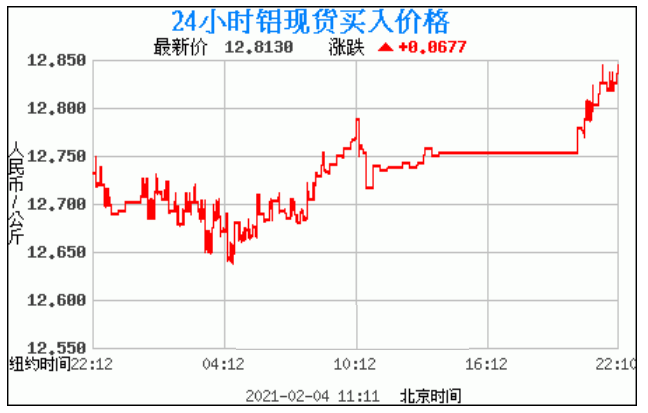 今日最新铝锭行情:12.8130