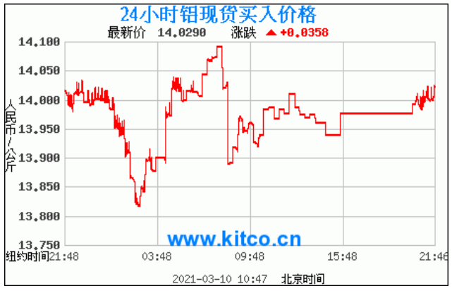 今日最新铝锭行情:14.0290