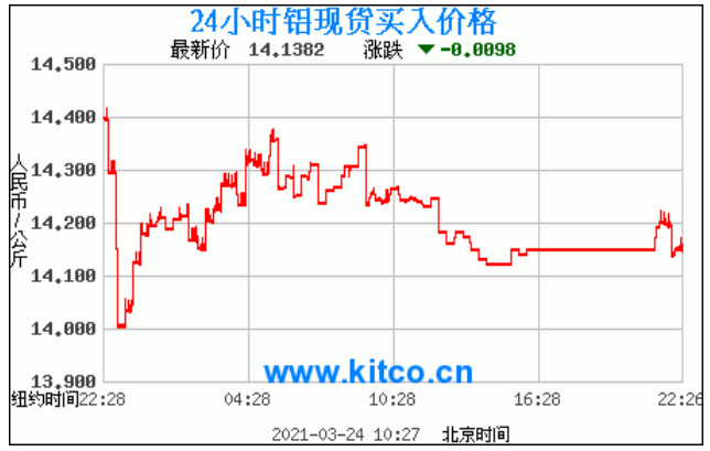 铝锭价格走势图 今日最新铝锭行情(2021年3月24日)