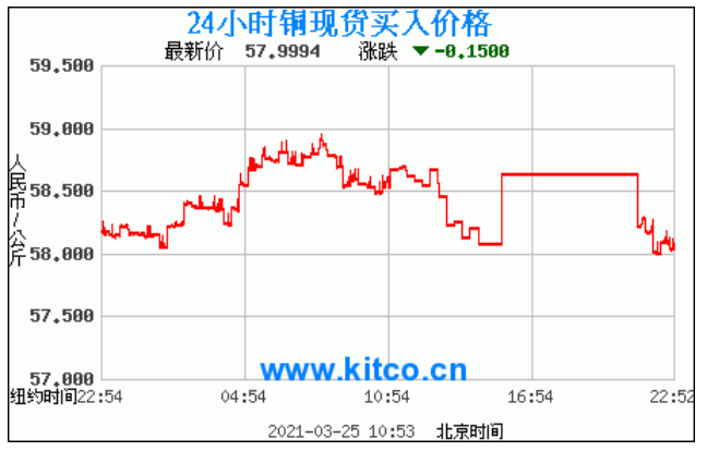 今日最新铜价:57.9994 涨跌:-0.1500