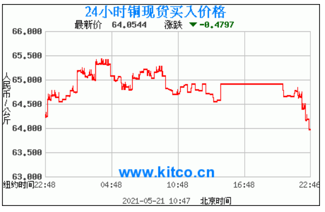 今日最新铜价:64.0544 涨跌:-0.4797