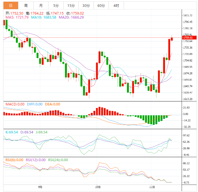 黄金价格表现出更大的看涨倾向,现在将达到1760.00区域,在看涨通道内移动,该通道支持实现我们在1765.00的下一个积极目标的机会,继续表明未来一段时间的看涨趋势,注意到突破该水平将延长看涨波,达到1800.00区域。