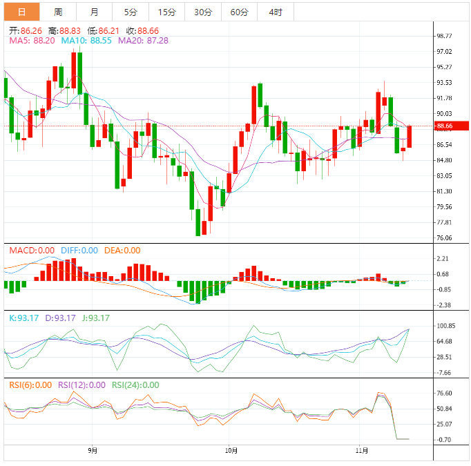 美原油震荡走高,一度上涨近3%至88.83美元/桶,美国CPI弱于预期的影响发酵到亚洲市场,亚洲股市普遍跟随隔夜美国涨势,提振了大宗商品买需,油价获得上涨动能,而且美元指数隔夜大跌,周四维持在近两个月低位附近,也给油价提供支撑;另外,美联储将放慢升息步伐的预期升温,增加了美国经济软着陆的可能性,需求预期有所改善。