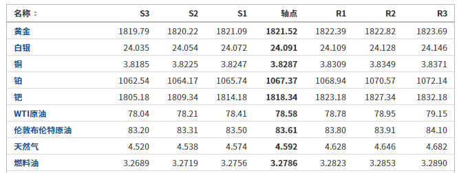 当天,2023年3月交割的白银期货价格上涨41美分,收于每盎司24.25美元,涨幅为1.72%;2023年4月交割的白金期货价格上涨44.8美元,收于每盎司1065美元,涨幅为4.39%。