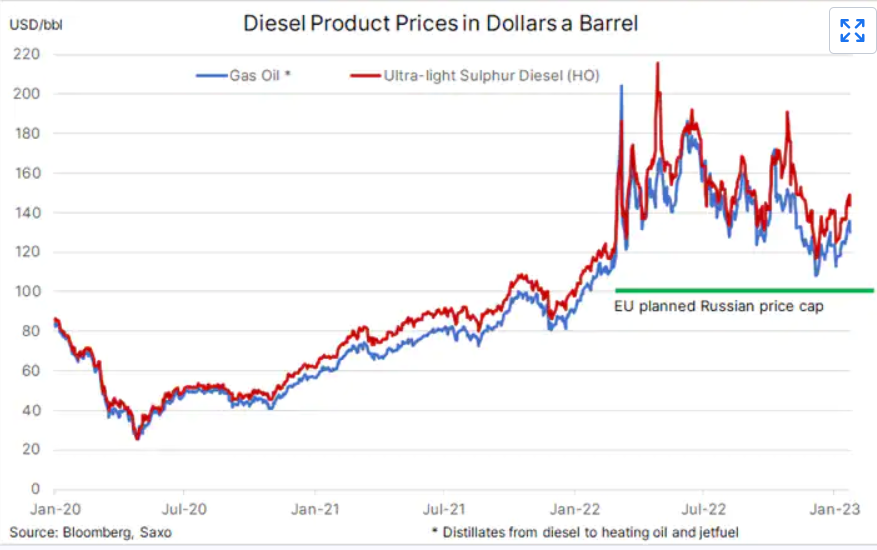 一旦欧盟对俄罗斯海运燃料出口的禁运生效,我们可能会看到汽油,尤其是柴油的价格仍将受到供应紧张的支撑——尤其是如果禁运之后还会对柴油实行每桶100美元的价格上限,这一水平比当前市场价格低约30美元。然而,俄罗斯可能难以将其柴油出售给其他买家,因为亚洲的主要客户更有兴趣向他们的炼油厂供应折扣很大的俄罗斯原油,然后这些原油可以转化为燃料产品,以全球市场的价格销售。