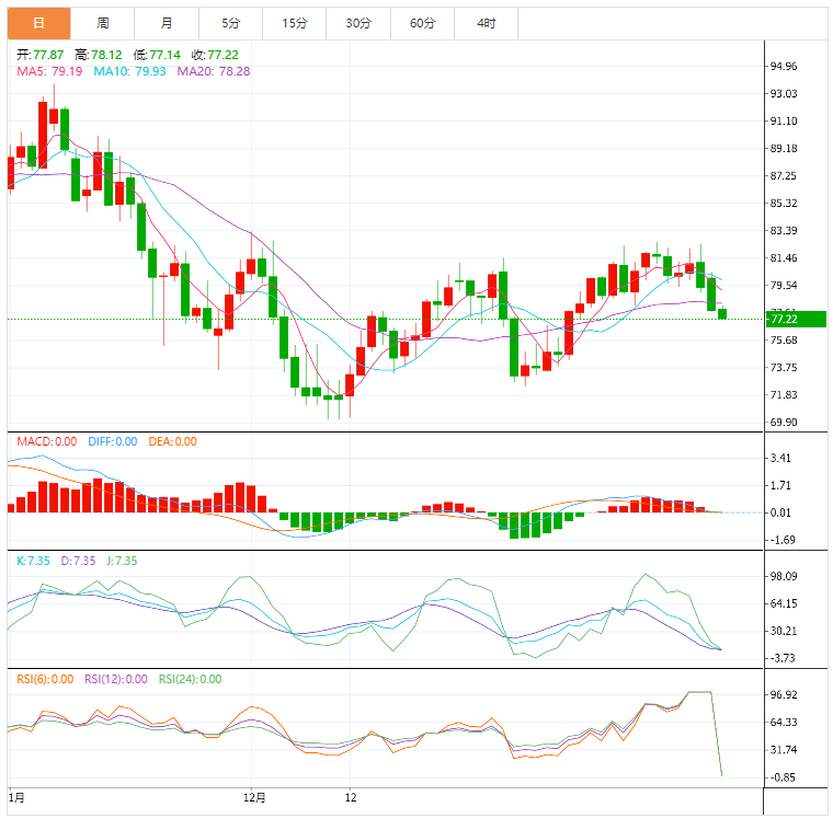 原油价格强势突破78.95,并明显下跌至接近77.00的障碍,在未来一段时间内受到预期的负面压力而下跌,目标是测试75.65作为下一个负面目标。