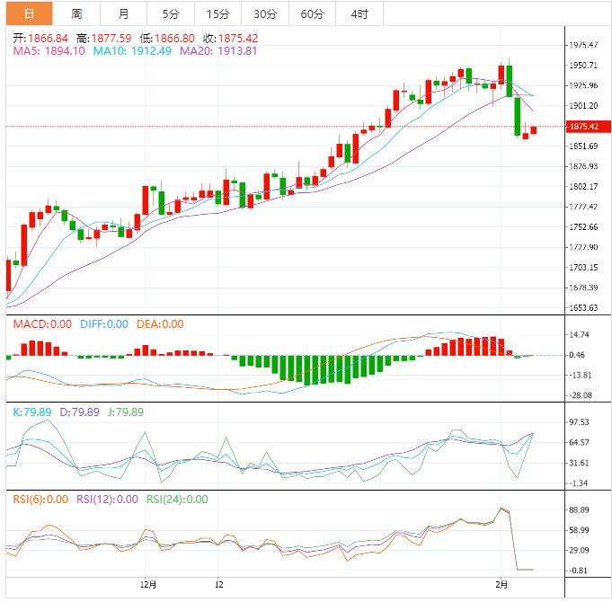 随机指标逐渐失去正动能,支撑下跌预期,突破1878.80将停止预期下跌,并导致价格再次回到主要看涨趋势。