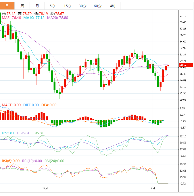 美原油窄幅震荡,目前交投于78.50美元/桶附近,土耳其的原油装载中断以及对中国需求复苏的乐观情绪继续提振人气,不过,美国原油库存上升至2021年6月以来最高水平,多头仍有所顾忌。