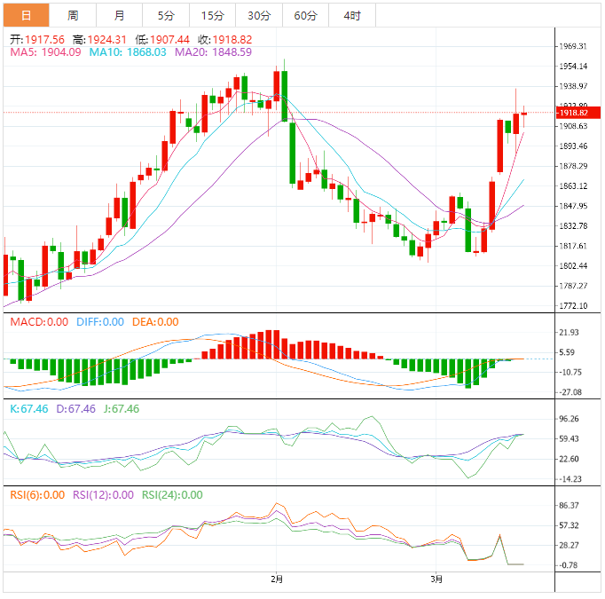 今天的预期交易区间位于1895.00支撑位和1935.00阻力位之间。