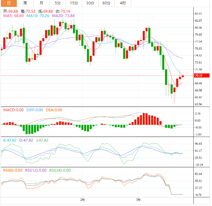 今天预期的交易区间在68.30支撑位和72.00阻力位之间。