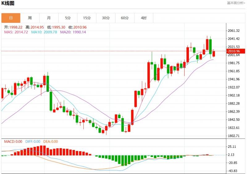 周一欧市盘中,现货黄金报2010.60,涨幅0.54%。
