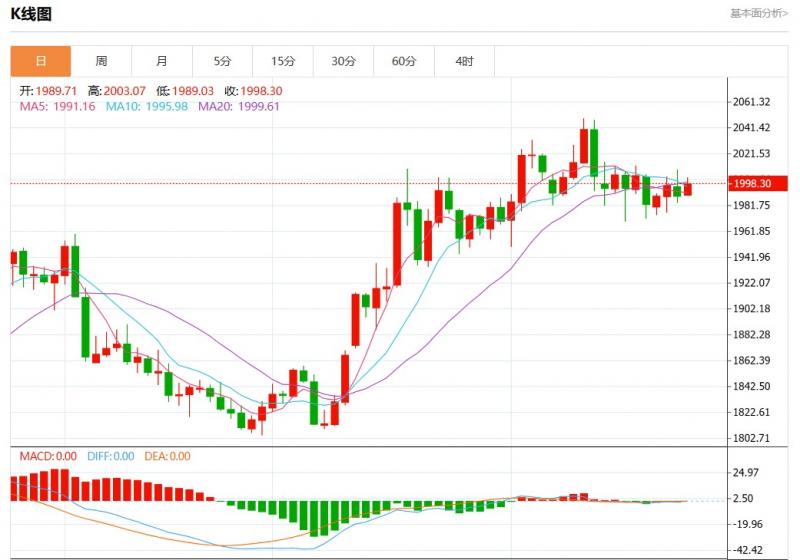 周四欧市盘中,现货黄金报1998.52,涨幅0.44%。