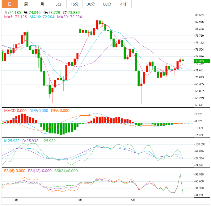 美原油小幅走弱,目前交投于74.07美元/桶附近,评级机构惠誉周三将美国的信用评级列为可能下调的观察名单,加剧了全球市场的不安情绪,令油价受到拖累。不过,EIA数据显示美国上周原油库存大幅下降,美国也即将迎来夏季需求高位,沙特之前警告将让做空者继续感受到痛苦,油价后市仍偏向多头。