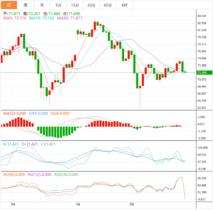 美原油小幅反弹,目前交投于72.08美元/桶附近,美元的回调给油价提供的一些反弹动能。隔夜油价大跌逾3%,一方面是俄罗斯副总理淡化了OPEC+在下周会议上进一步减产的前景,另一方面是市场对美联储6月份加息预期升温,美元指数刷新逾两个月高点。