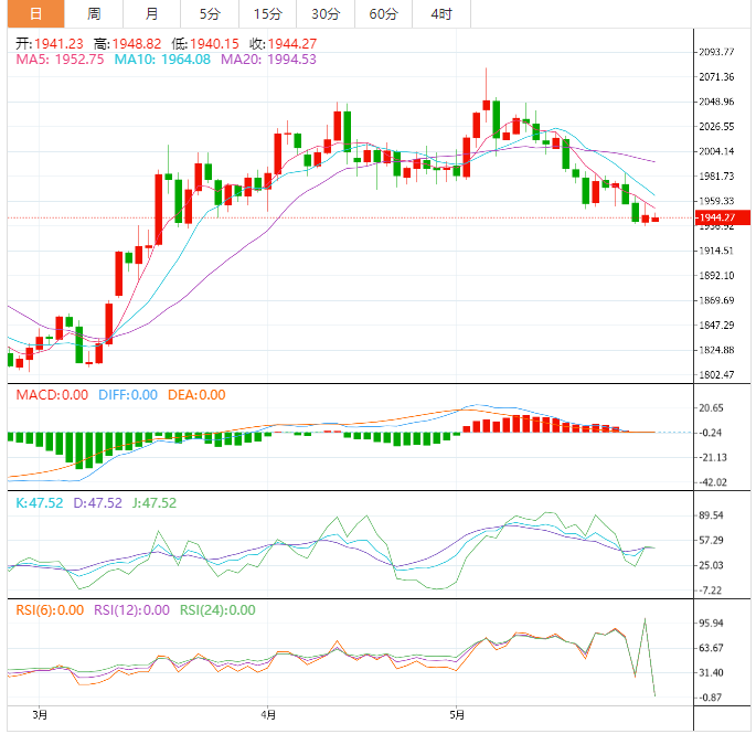 黄金价格在1945.20附近结算,注意到最后一个日烛台收盘价低于该水平,加强了日内和短期基础上实现更多看跌修正的可能性,等待访问1913.15作为下一个主要目标。