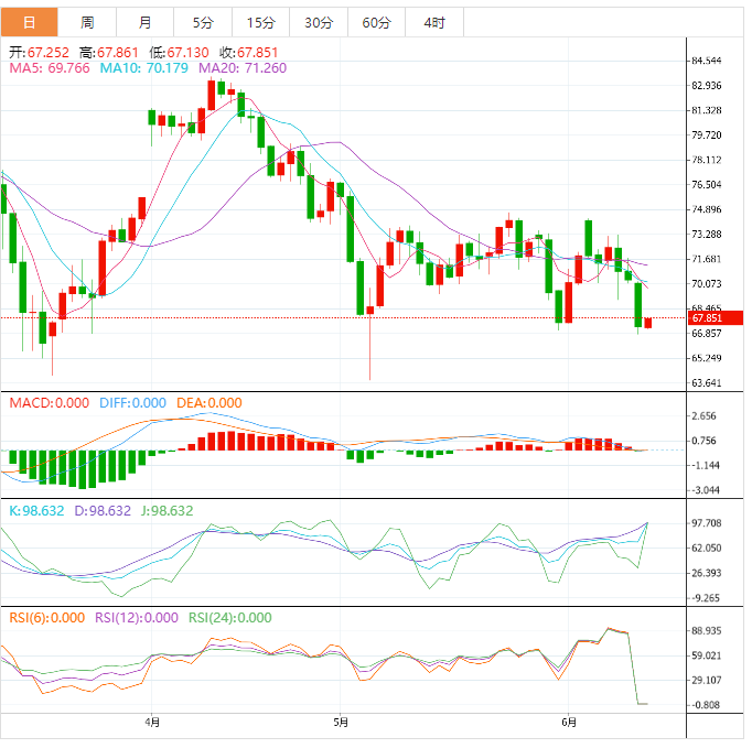 美原油小幅反弹,目前交投于67.47美元/桶附近,隔夜油价大跌,出现了一些逢低买盘和部分空头离场,另外,隔夜美股大涨创逾一年新高也支撑油价。市场普遍预期美国通胀增速放缓,美联储本周将暂停加息,美元指数下跌,也给油价提供反弹动能。
