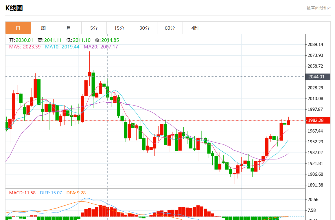 周四欧市盘中,现货黄金报1981.42,涨跌幅0.22%
