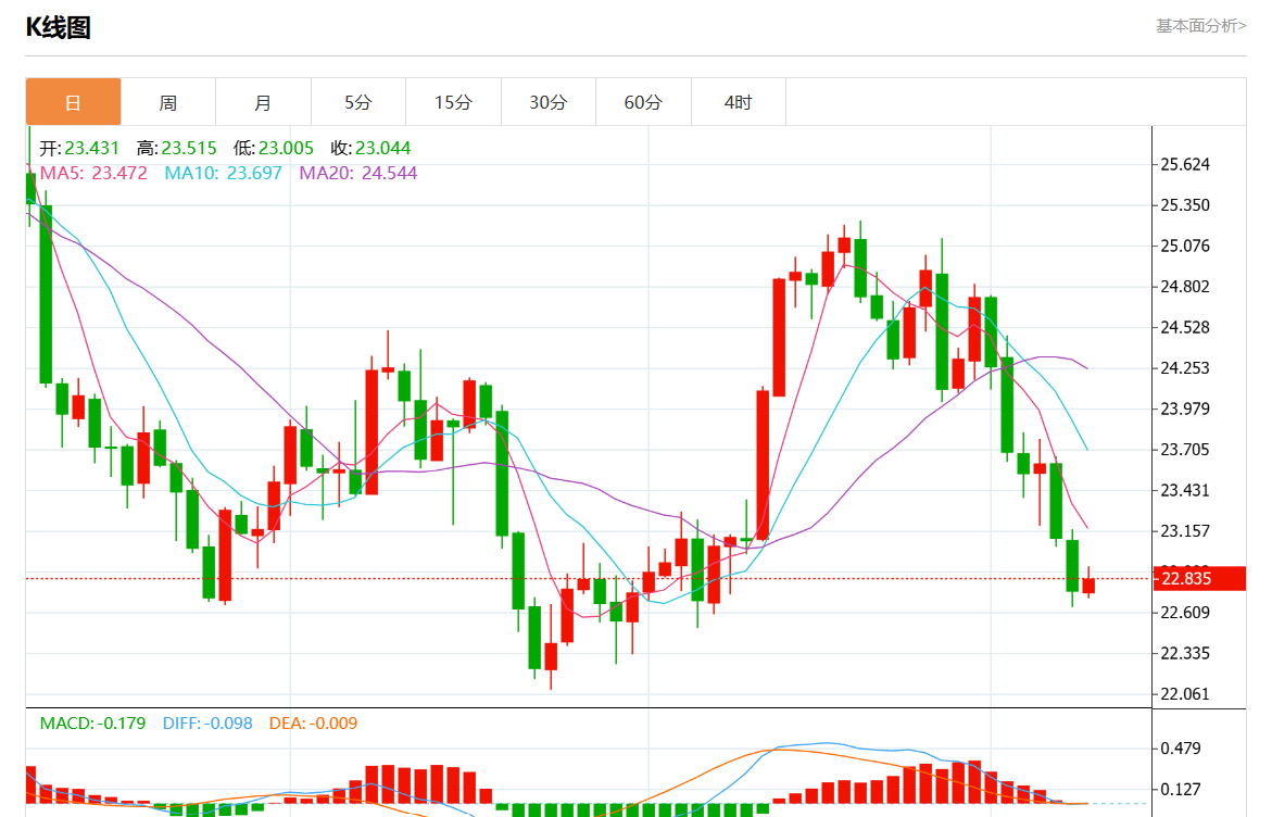 周三欧市盘中,现货白银报22.780,涨幅0.09%。