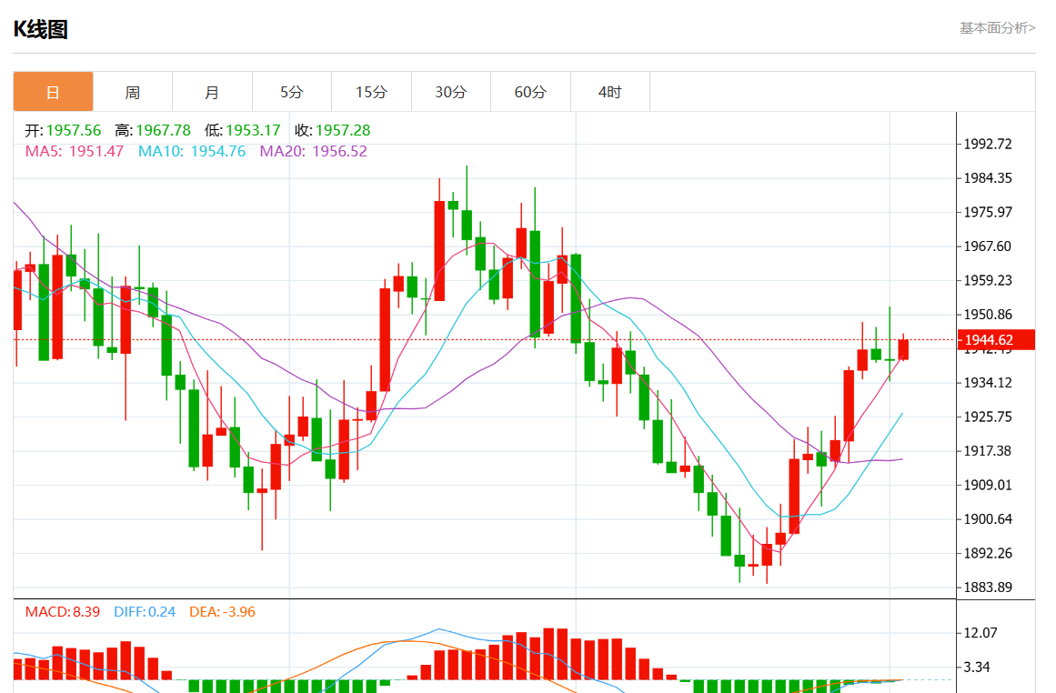 周一欧市盘中,现货黄金报1943.27,涨幅0.18%。