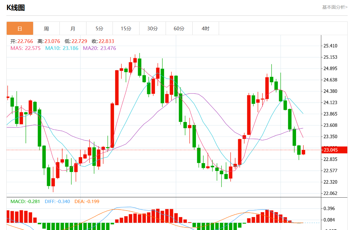 周五欧市盘中,现货白银报23.018,涨幅0.32%。