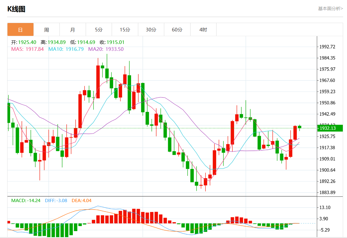 周二欧市盘中,现货黄金报1934.29,涨幅0.04%。
