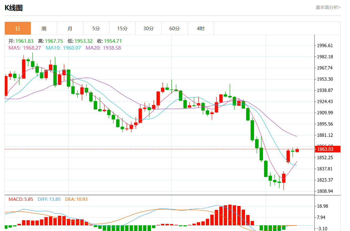 周三欧市盘中,现货黄金报1869.11,涨幅0.48%。