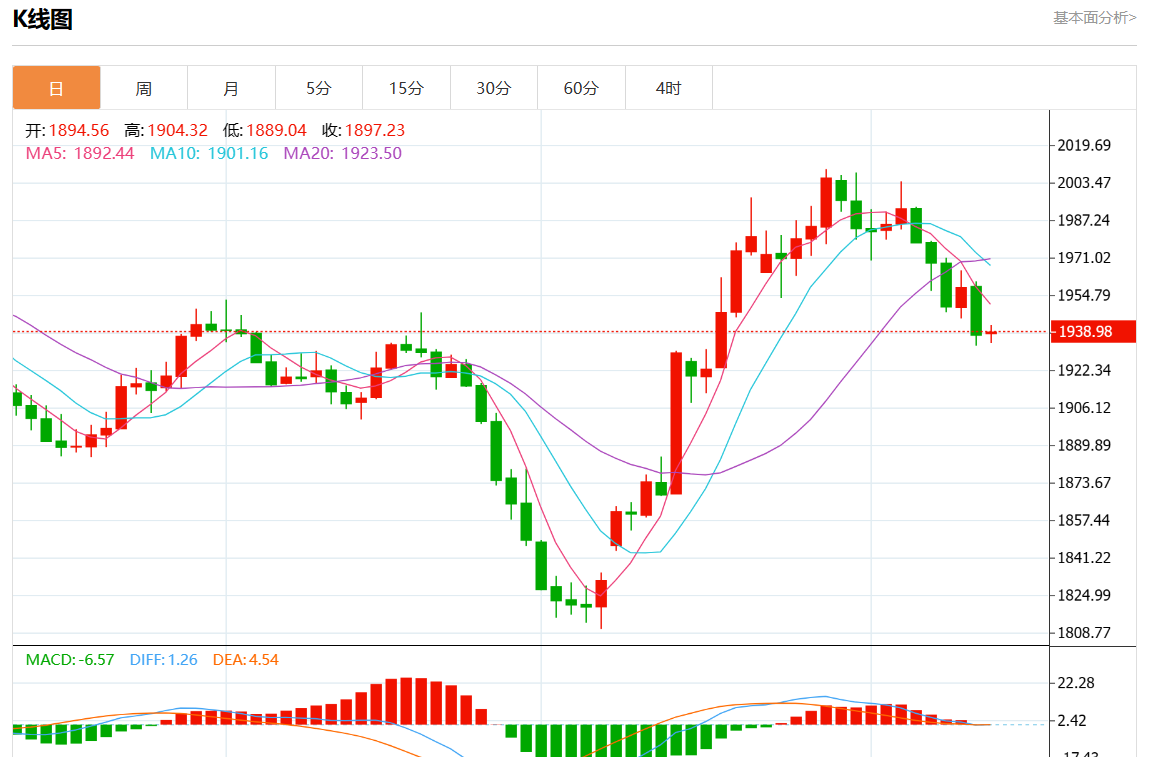 周一欧市盘中,现货黄金报1936.12,跌幅0.08%。