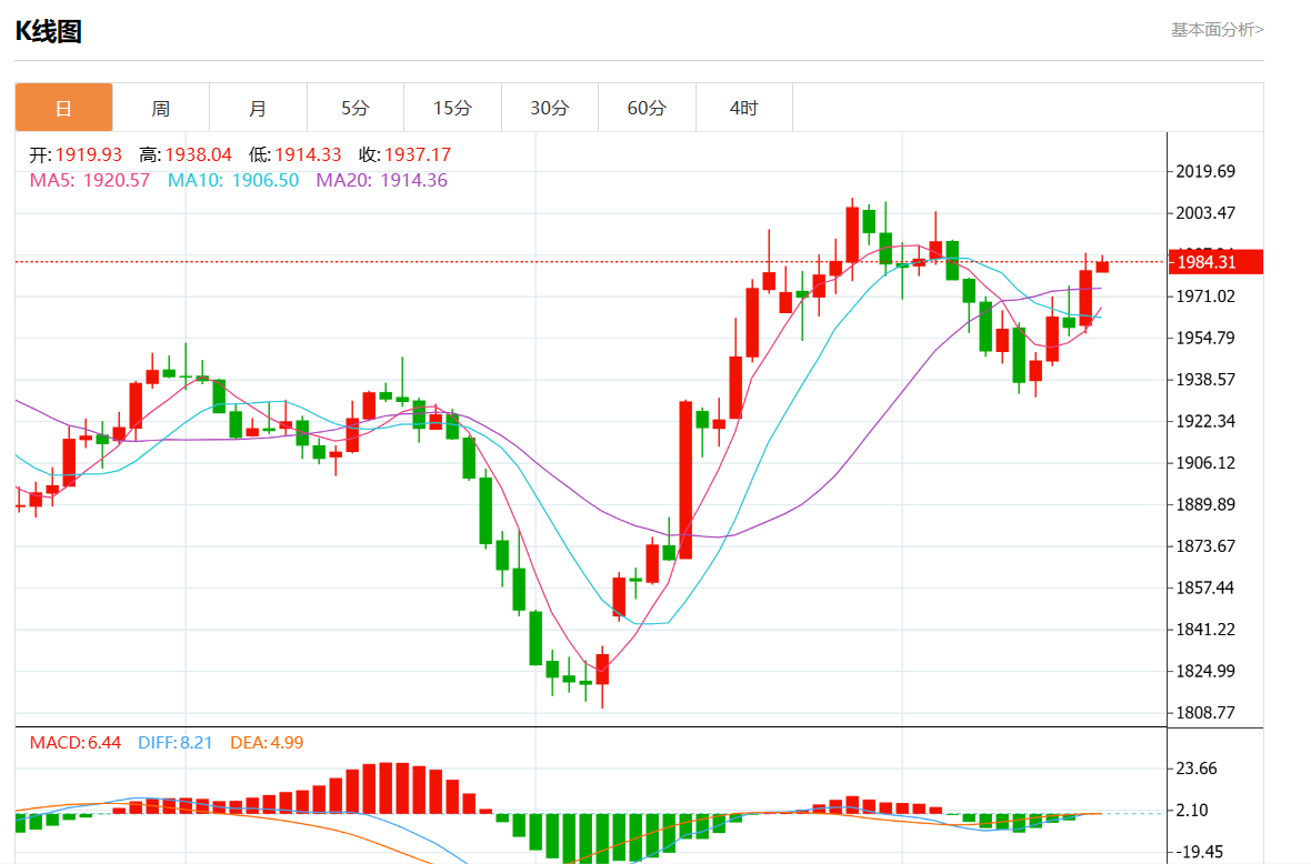 周五欧市盘中,现货黄金报1983.69,涨幅0.13%。