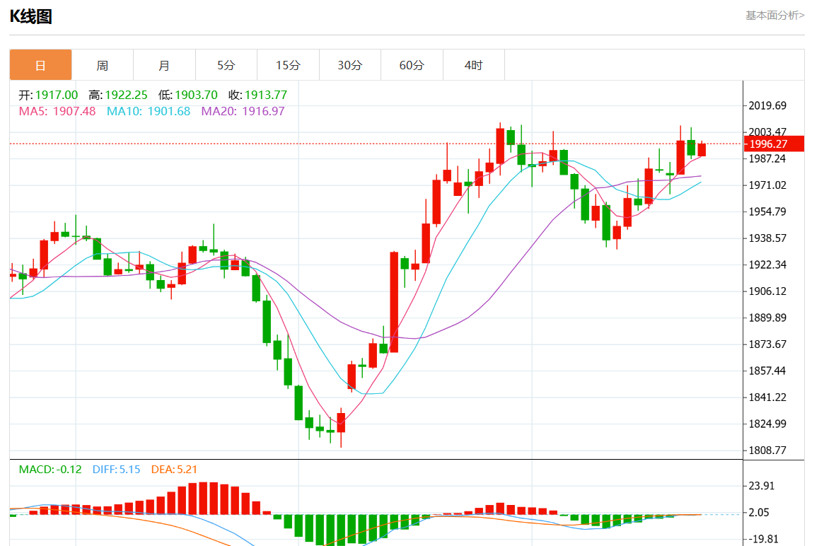 周四欧市盘中,现货黄金报1994.96,涨幅0.277%。