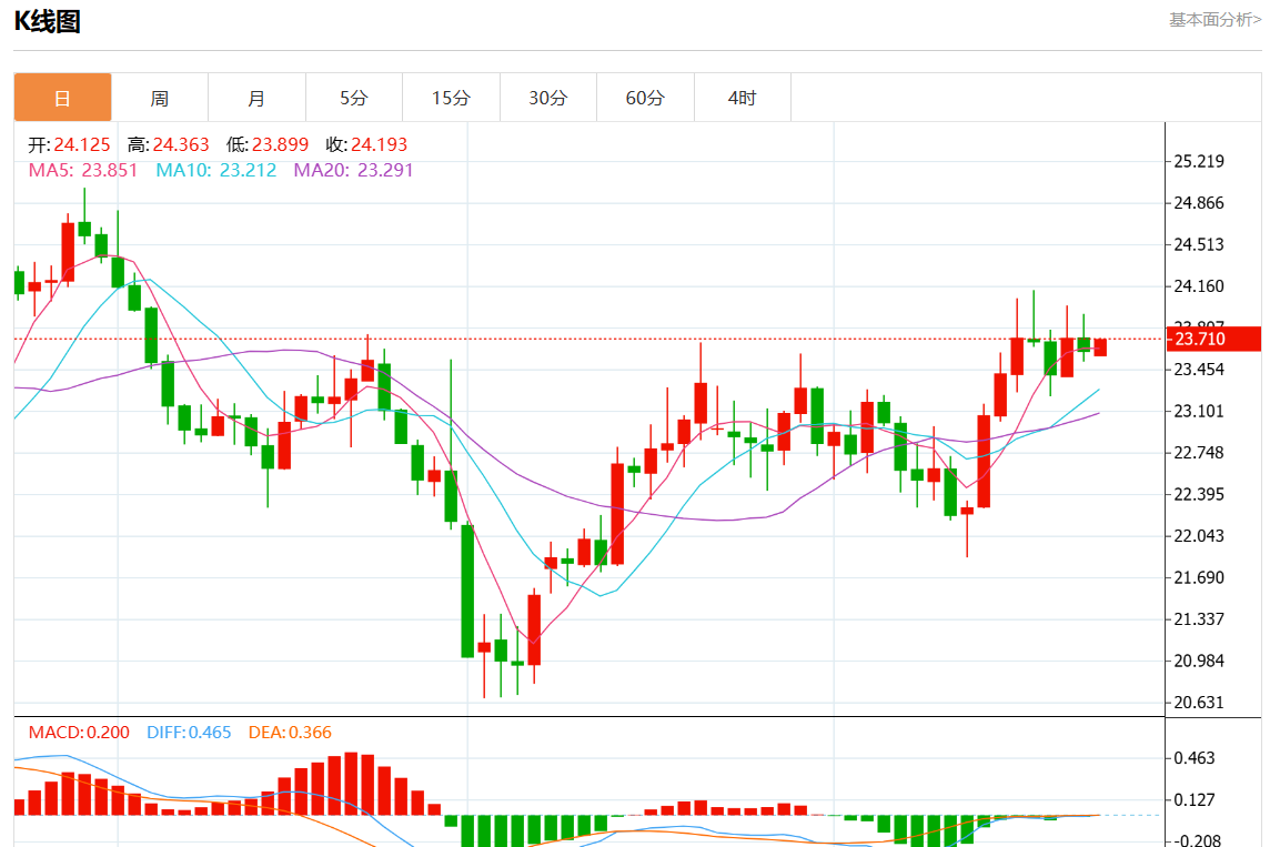 周四欧市盘中,现货白银报23.623,涨幅0.05%。