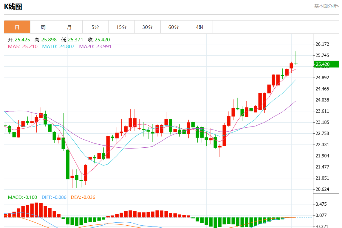 周一欧市盘中,现货白银报25.130,跌幅1.22%。