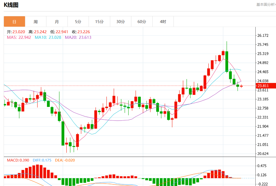 周五欧市盘中,现货白银报23.792,涨幅0.05%。