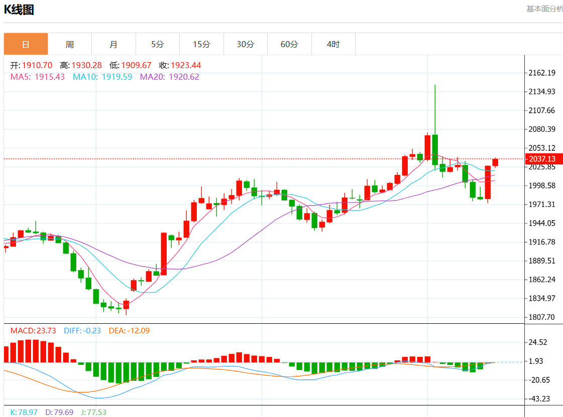 周四欧市盘中,现货黄金报2020.61,涨幅0.63%。